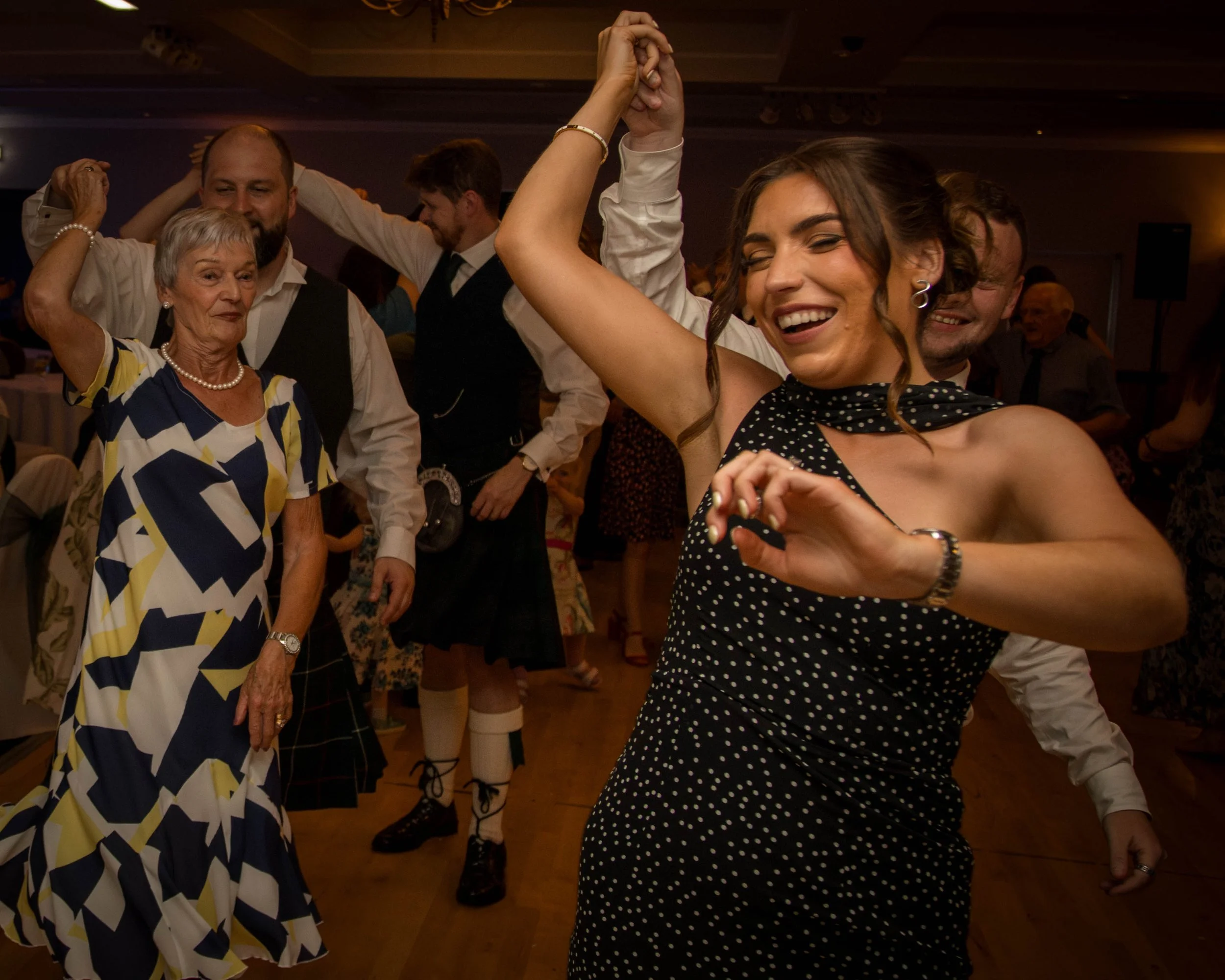 The evening reception is always a huge highlight, it might be a Ceilidh, a disco or a live band. most weddings will have a first dance and if you are having any extras such as father daughter/mother son dances or even a bouquet toss, just let us know in advance and we will make sure we get them!